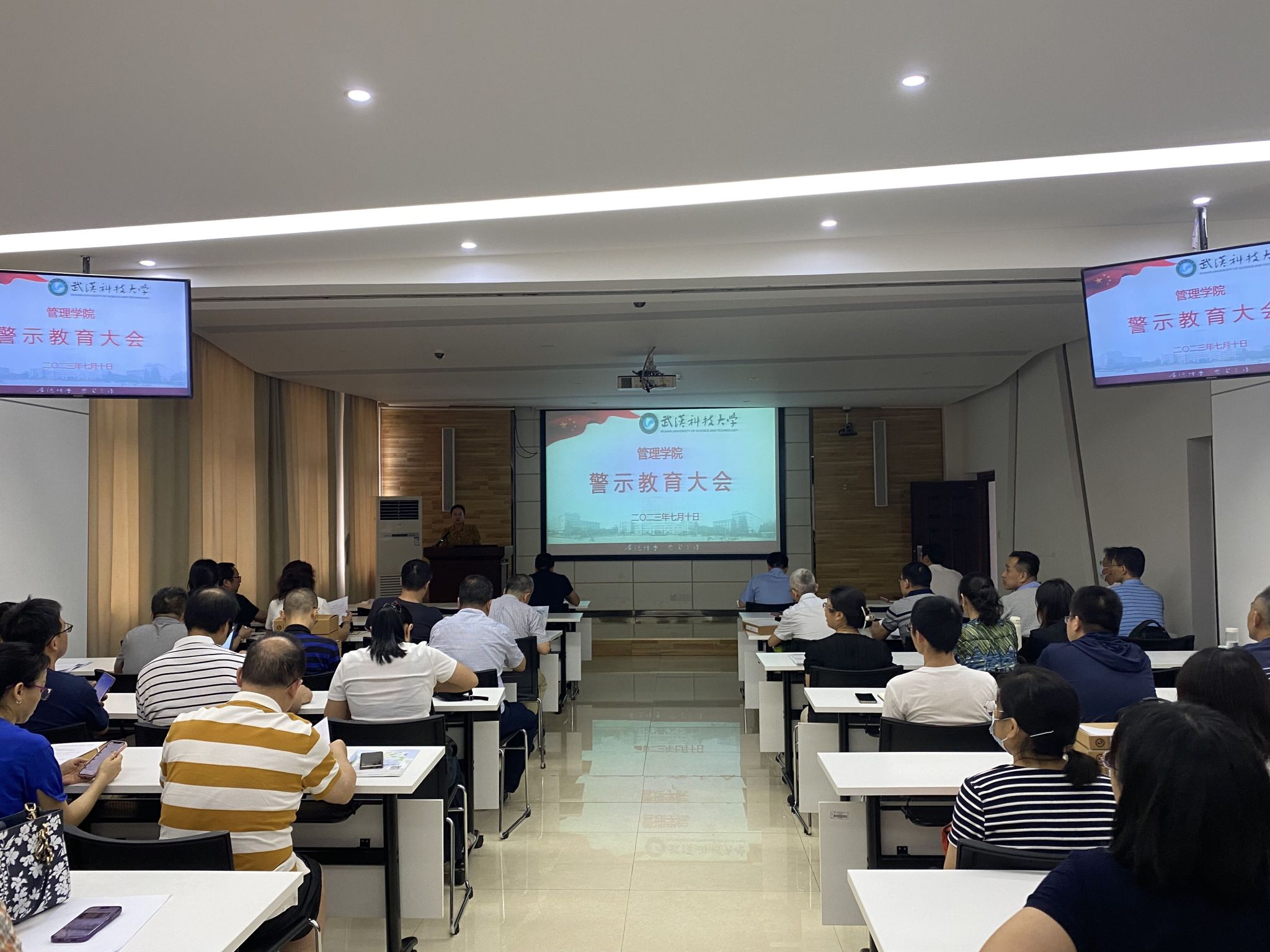 按照学校党风廉政建设宣传教育月有关要求,7月10日下午,学院在80307会议室召开警示教育大会暨集体廉政谈话,学院党委书记伍学云讲廉政党课,学院全体教职工参加会议。