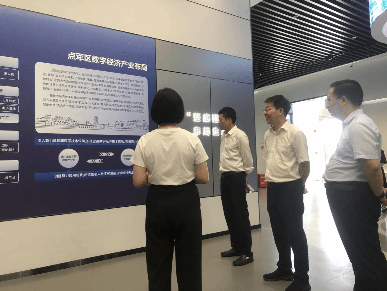 7月18日,团队抵达点军江南科创园,调研团队对国家先进计算中心在建项目、青葵机器人科技有限公司、中科睿芯信息高铁华中枢纽站80P高通量算力中心项目、北斗时空大数据底座项目展开了深入调研。其中,调研团队了解到北斗时空大数据底座项目的核心内容包括北斗时空融合编码(中部)中心建设、北斗产业园的打造以及北斗时空大数据底座的构建,此外。该项目是点军区推动区域数字化转型、构建智慧城市的又一重要举措,标志着点军区在大数据和时空信息处理领域迈出了坚实的步伐。