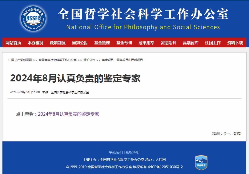 近日,全国哲学社会科学工作办公室公布了2024年8月“认真负责的鉴定专家”名单,pa电子官网刘海兵教授再次入选。