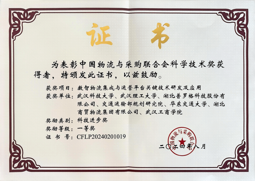 9月4日,由中国物流与采购联合会(简称:中物联)与合肥市人民政府联合主办,中国物流信息中心、合肥市发展和改革委员会等共同承办的2024现代物流科技创新与枢纽经济发展大会在安徽合肥召开,会上揭晓了“2024年度中国物流与采购联合会科学技术奖”获奖名单,由pa电子官网pa电子官方网站教师王勇主持的“数智物流集成与运营平台关键技术研发及应用”获科技进步一等奖(证书编号:CFLP20240201019)。