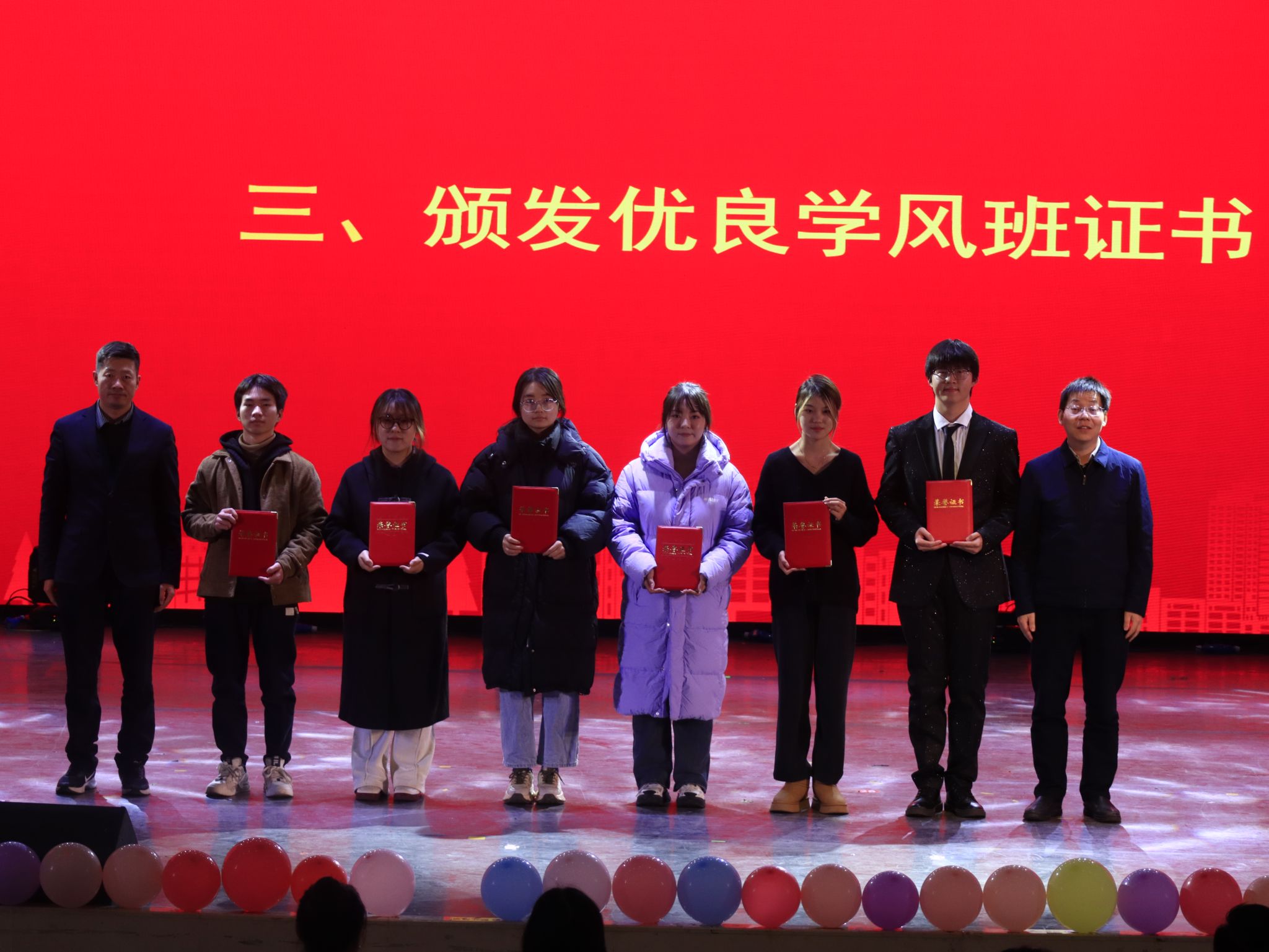 宣读表彰决定后,黎精明为优秀学生标兵代表颁发荣誉证书,伍学云和刘海兵为优良学风班代表进行了颁奖,勉励全体师生们为学院优良学风建设持续贡献自己的力量。
