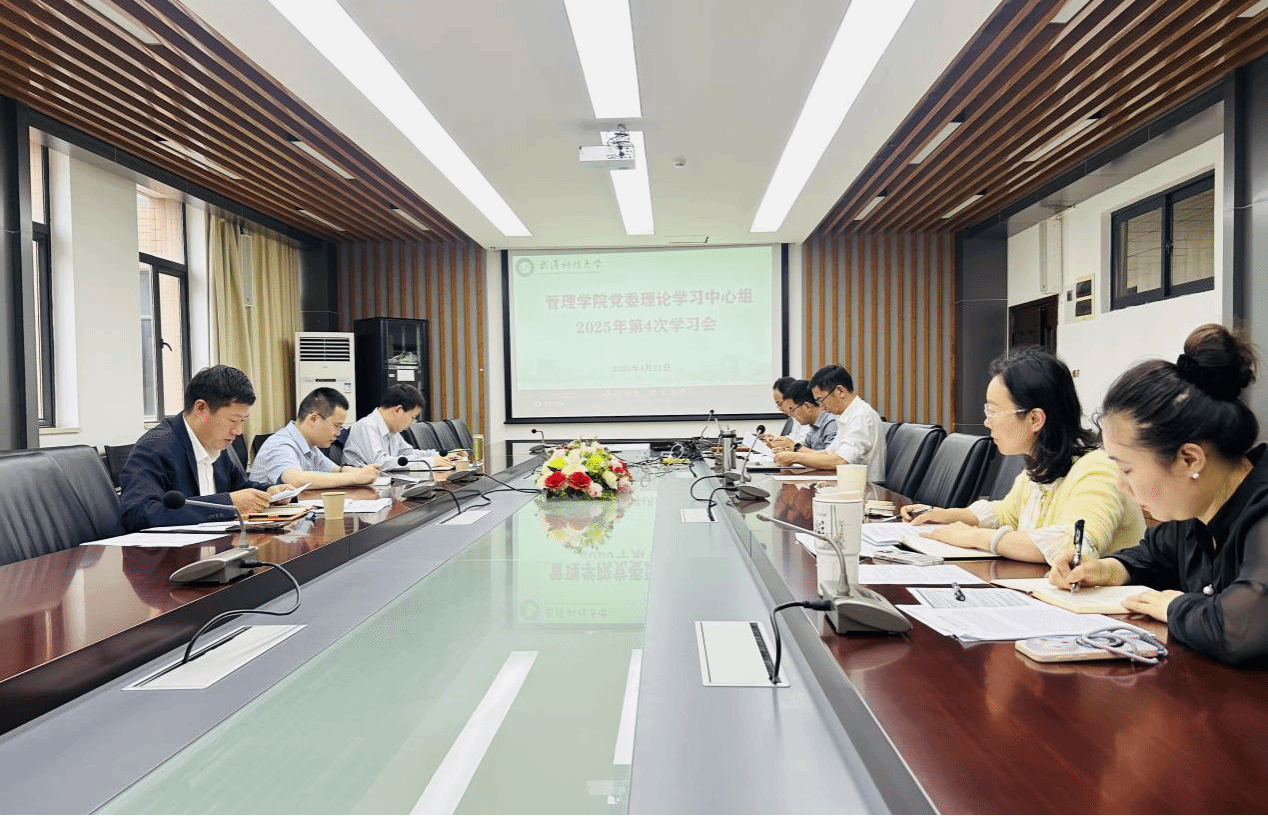 4月21日上午,学院在黄家湖校区80315会议室举行2025年党委理论学习中心组第四次学习。党委书记伍学云主持学习会,全体党委委员参加学习,党委宣传部副部长徐乾到会指导。