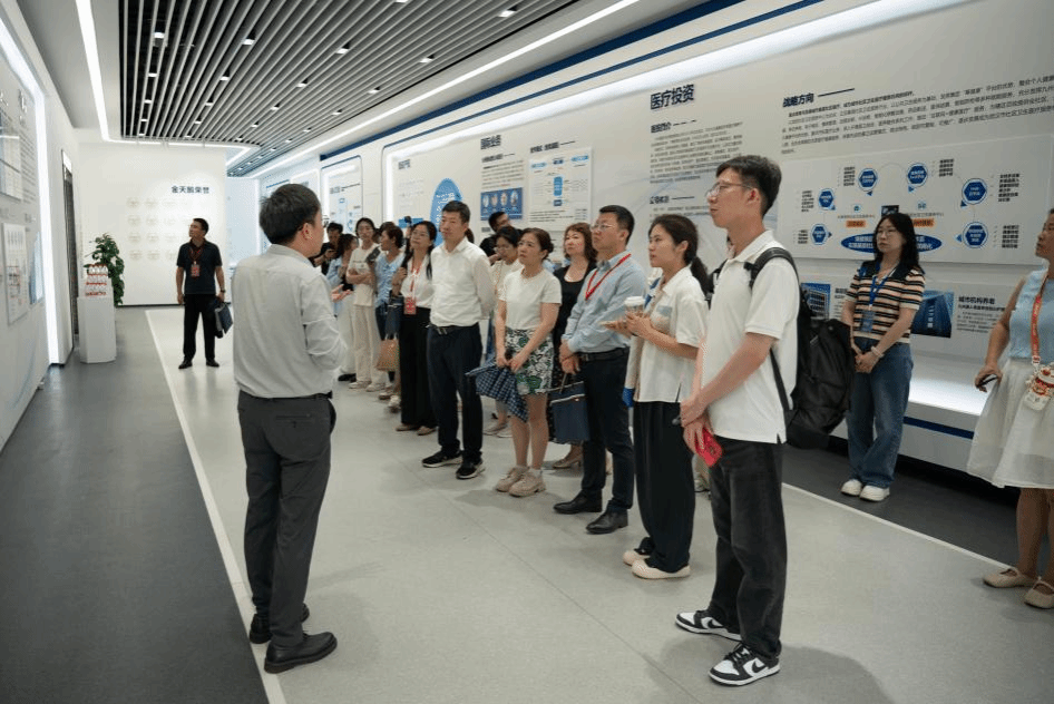 在九州通集团副总经理刘志峰的陪同下,调研团队参观了企业展厅,通过沉浸式体验和数字化沙盘演示,深入了解九州通从区域医药流通企业到全国性龙头的发展历程,以及其在数字化转型中的创新实践。刘志峰重点介绍了企业在智能仓储管理、大数据预测等方面的应用成果,展示了科技赋能传统产业的实践路径。调研团队对九州通的人才需求情况进行了深入调研。