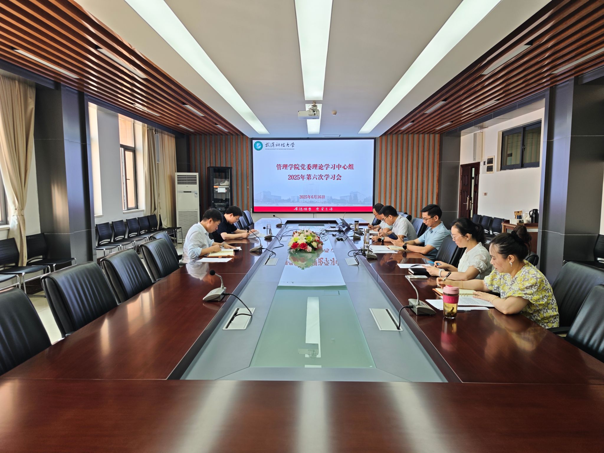 (通讯员:李菲菲)6月16日上午,学院在黄家湖校区80315会议室举行2025年党委理论学习中心组第六次学习。党委书记伍学云主持学习会,全体党委委员参加学习。