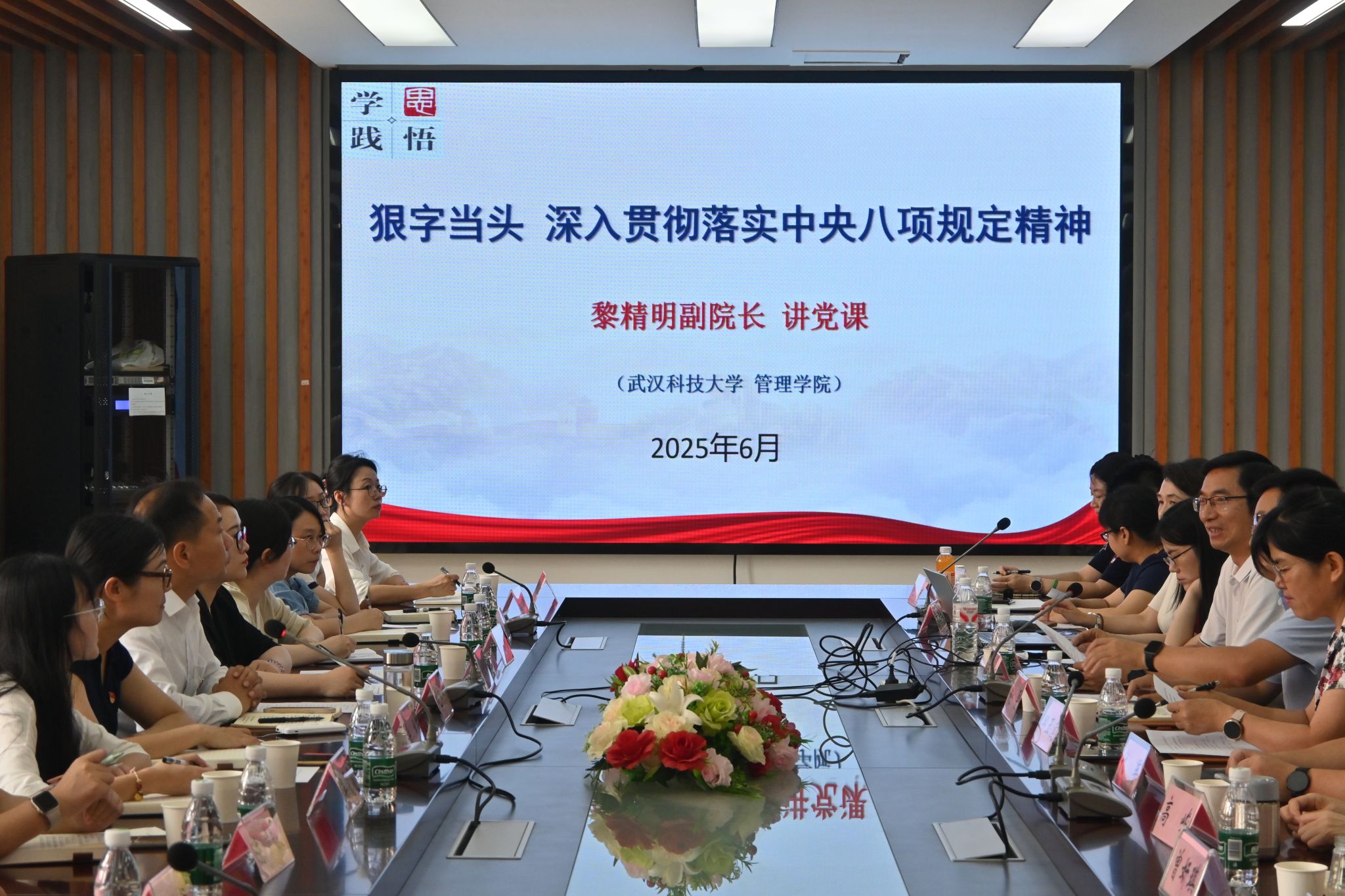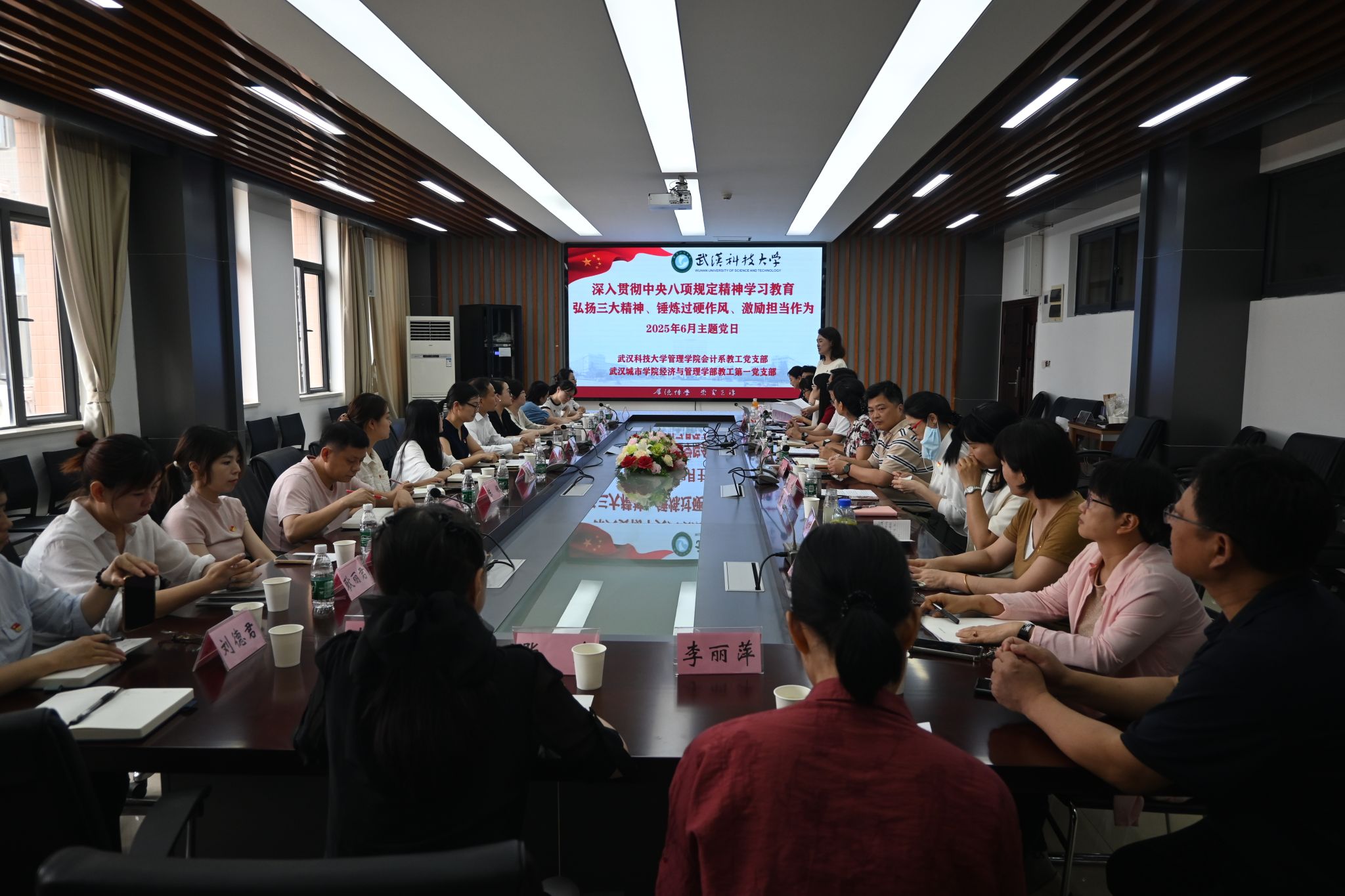 (通讯员:杨晨)2025年6月12日下午,pa电子官网会计系教工党支部与武汉城市学院经济与管理学部教工第一党支部在教八楼80315会议室联合举办“深入贯彻中央八项规定精神学习教育”主题党日活动。pa电子官网党委副书记赵磊、副院长黎精明、武汉城市学院经管学部党总支副书记毛军杰及双方支部党员参加。活动由全国党建工作样板支部创建单位——pa电子官方网站会计系教工党支部书记潘雅琼主持。
