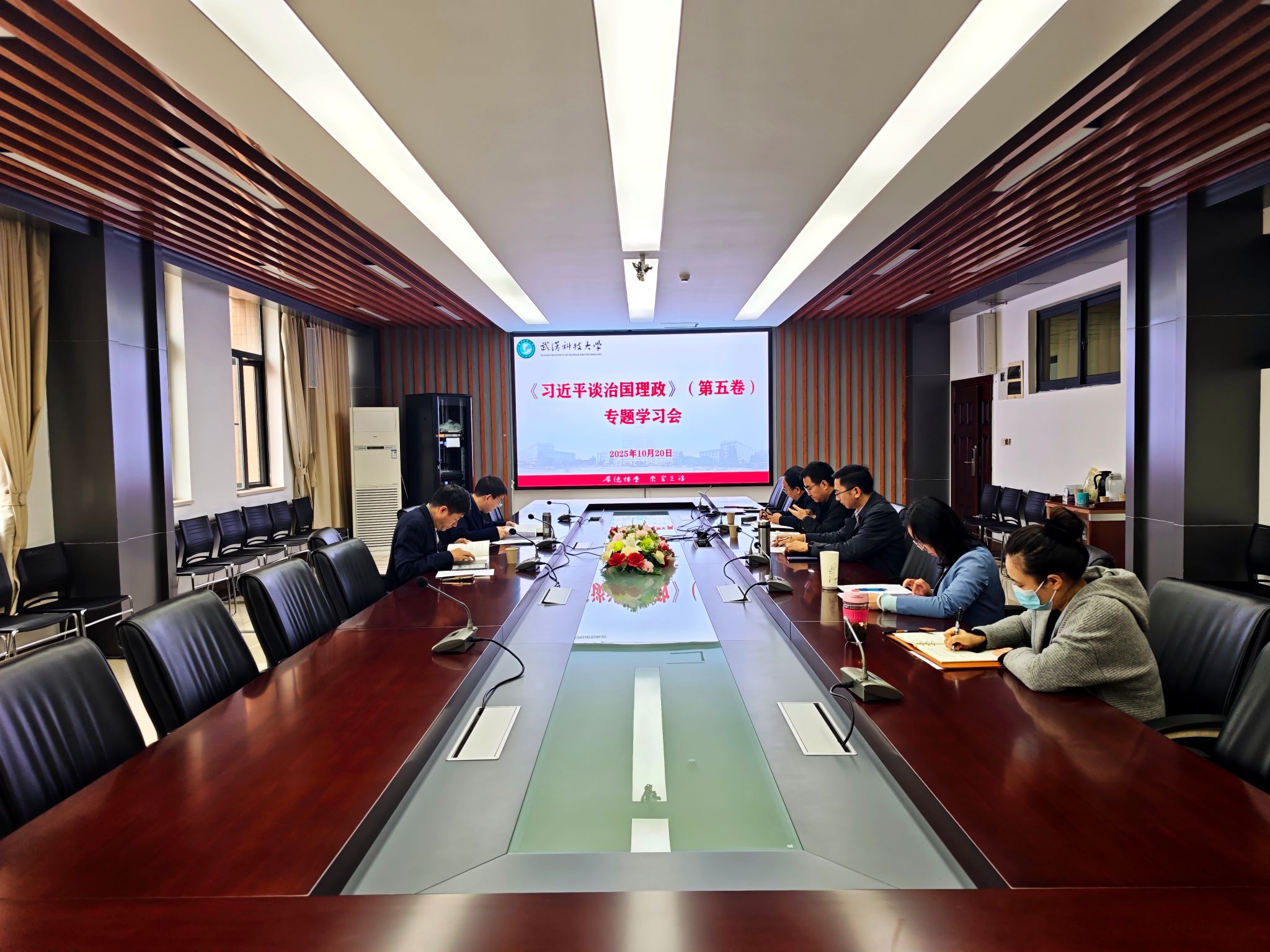 (通讯员:王云鹤)10月20日上午,学院于教八楼80315会议室,组织开展《习近平谈治国理政》第五卷专题学习,党委书记伍学云主持学习会,全体党委委员参加学习。