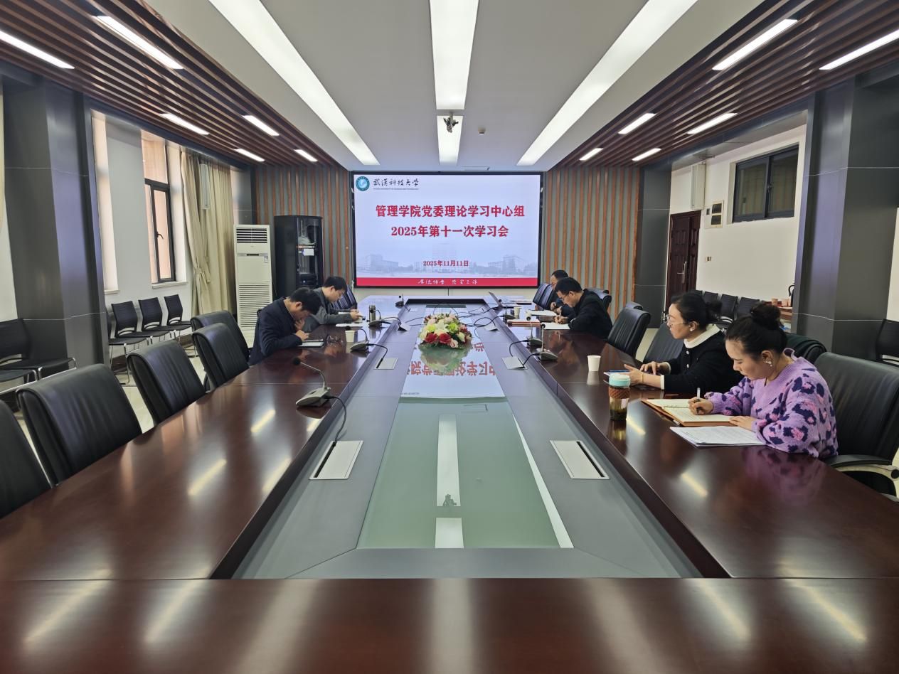 (通讯员:李菲菲 王云鹤)11月11日上午,学院在黄家湖校区80315会议室举行2025年党委理论学习中心组第十一次学习。党委书记伍学云主持学习会,全体党委委员参加学习。