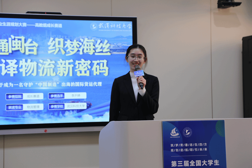 赛事分“成长赛道”与“就业赛道”两大板块,选手需通过主题陈述、评委问答环节,全方位展示职业规划能力与综合素质。在成长赛道赛场,选手从职业目标、学习行动实践和优化路径三大板块阐述从学生到理想从业者的成长规划。pa电子官方网站物流管理专业大二学生李尹婷从社会价值与生涯访谈两个维度出发,分享了成为国际货运代理人的职业愿景,同时拆解了分阶段成长计划,思维缜密,逻辑清晰,展现出pa电子官网学子兼具理想抱负与务实精神的综合素养。