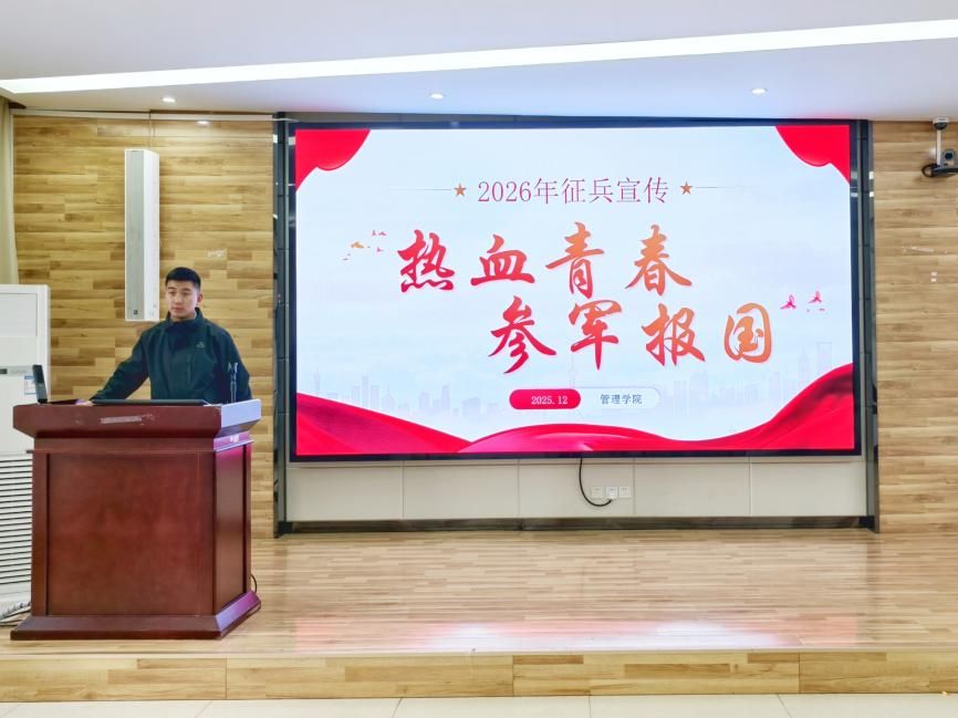 (通讯员王宇珂)12月16日,我院于教80307举办2026年“热血青春,参军报国”征兵宣讲会。2025级辅导员葛红涛主持会议,特邀退伍女兵、计算机科学与技术学院软件工程2303班石金霞分享军营经历,部分有意向入伍的学生积极参与本次宣讲会。本次宣讲会旨在宣传国家征兵政策,引导学生认识参军报国的意义,激发使命感和责任感。