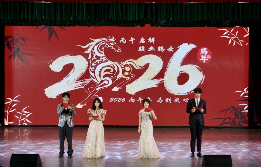表彰大会结束后,元旦晚会正式开始,晚会分为“金蛇辞旧岁”“喜马闹元春”“策马赴韶华”三个篇章。从《我的未来式》的活力开唱,到《岁月里的歌串烧》的温情演绎;从《长寿秘籍》的幽默小品,到《新白雪公主》的创意改编,每一个节目都凝聚着学生的心血,展现了pa电子官网学生的多才多艺与青春活力。本次晚会不仅有精彩的节目,还设置了福利满满的抽奖活动。随着中奖号码一个接一个公布,在师生的共同期待和欢呼中,一份份精美礼品被送出,现场充满了喜庆和温情。