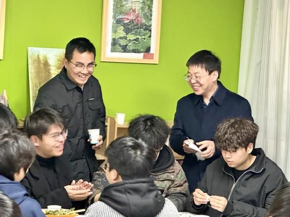 活动伊始,学生们分组协作,在南苑食堂工作人员的指导下学习揉面、擀皮、包馅。伍学云、赵磊与学生们一同动手,边包饺子边交流心得,还将象征吉祥的硬币包入饺子,制成“幸运饺子”。他们亲切询问学生们近期的学习和生活情况,叮嘱学生们期末要注意劳逸结合。为增添活动的趣味性,本次活动设置了“饺王”评选环节,由食堂工作人员与社区辅导员从数量、质量、创意三方面评审,最终评选出3名“饺王”并颁发实践证书与礼品。随后的“幸运饺子”环节,吃到硬币的学生获得限量文创礼品,现场欢呼不断。