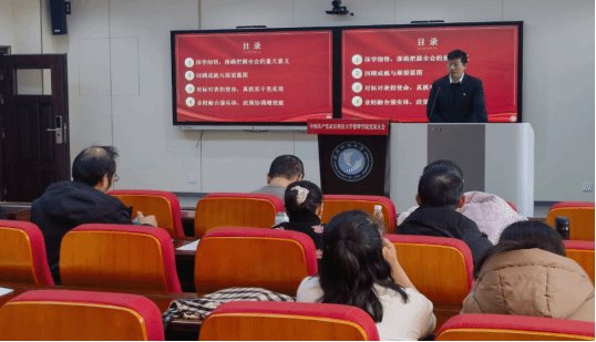 1月9日下午,pa电子官方网站院长刘海兵在教八楼80103报告厅,以“深入学习贯彻党的二十届四中全会精神——立足‘十五五’新征程 书写创新发展新答卷”为题,为工商管理系教工党支部党员讲党课。