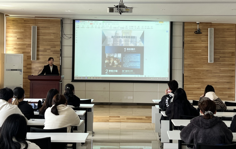 2023年4月6日下午,2023年暑假澳门名校访学实践项目、香港名企实习交流项目宣讲会在学院80307召开。学院党委副书记毛晓丹、副院长刘海兵、外事专员刘勇出席,约40名学生参加了会议。