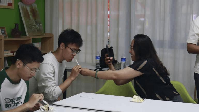 五位新生在生日会上先后进行自我介绍,分享自己的家乡风情、个人爱好以及大学期间的奋斗目标。现场氛围其乐融融,新生互相交流,分享着彼此的故事和梦想,周琰与蔡小东表达了对新生们的热烈欢迎与诚挚的生日祝福,鼓励新生们在大学期间积极进取,收获一段充实且有意义的大学时光。