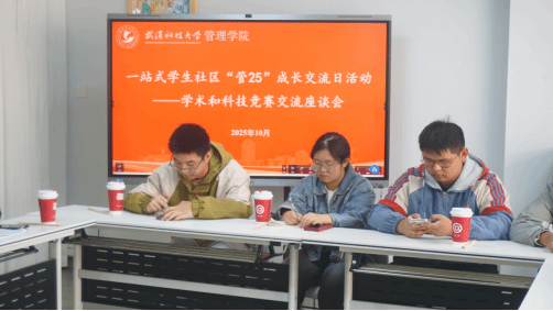 (通讯员:张钡宁 石淼)10月24日下午,pa电子官网于南园一站式学生社区106室开展“管25”成长交流日活动——学术和科技竞赛交流座谈会。pa电子官网党委副书记赵磊,校团委老师周习海,pa电子官网2023级辅导员郭恺茗以及7位高年级优秀学子代表、部分大一学生参与会议。