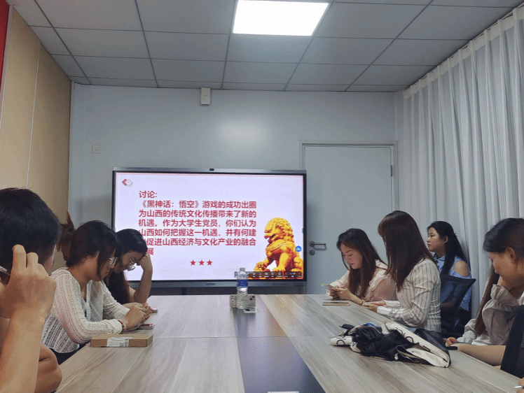活动最后,支部党员就当前时事热点《黑神话:悟空》的成功出圈对山西带来的机遇与挑战展开了热烈的讨论,并以大学生党员的身份对促进山西经济与文化产业的融合发展提出了许多有效建议,支部成员何颂说道:“黑神话悟空为山西省带来旅游热潮,这可以说是“天降富贵”,但同时我们也应该冷静思考这种突发的流量该如何保持。我认为,山西要抓住这波文旅流量,应该对一些过去封闭的景点做适度开发,将开发与保护并举;同时可提供山西特色美食、黑神话主题民宿、黑神话文旅周边商品等特色服务,提升文旅丰富度和游客满意度。”