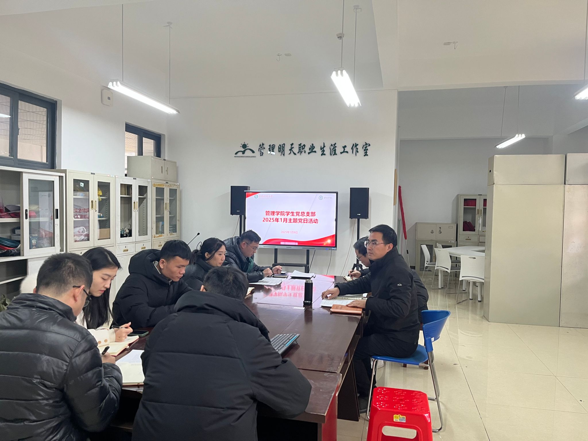 1月9日上午,学院党委书记伍学云在80308会议室与学生党总支全体支委进行交流座谈,并讲授廉政党课。课后,学生党总支开展了2025年1月主题党日学习活动,活动由党委副书记赵磊主持,学生党总支全体支委参与本次学习。