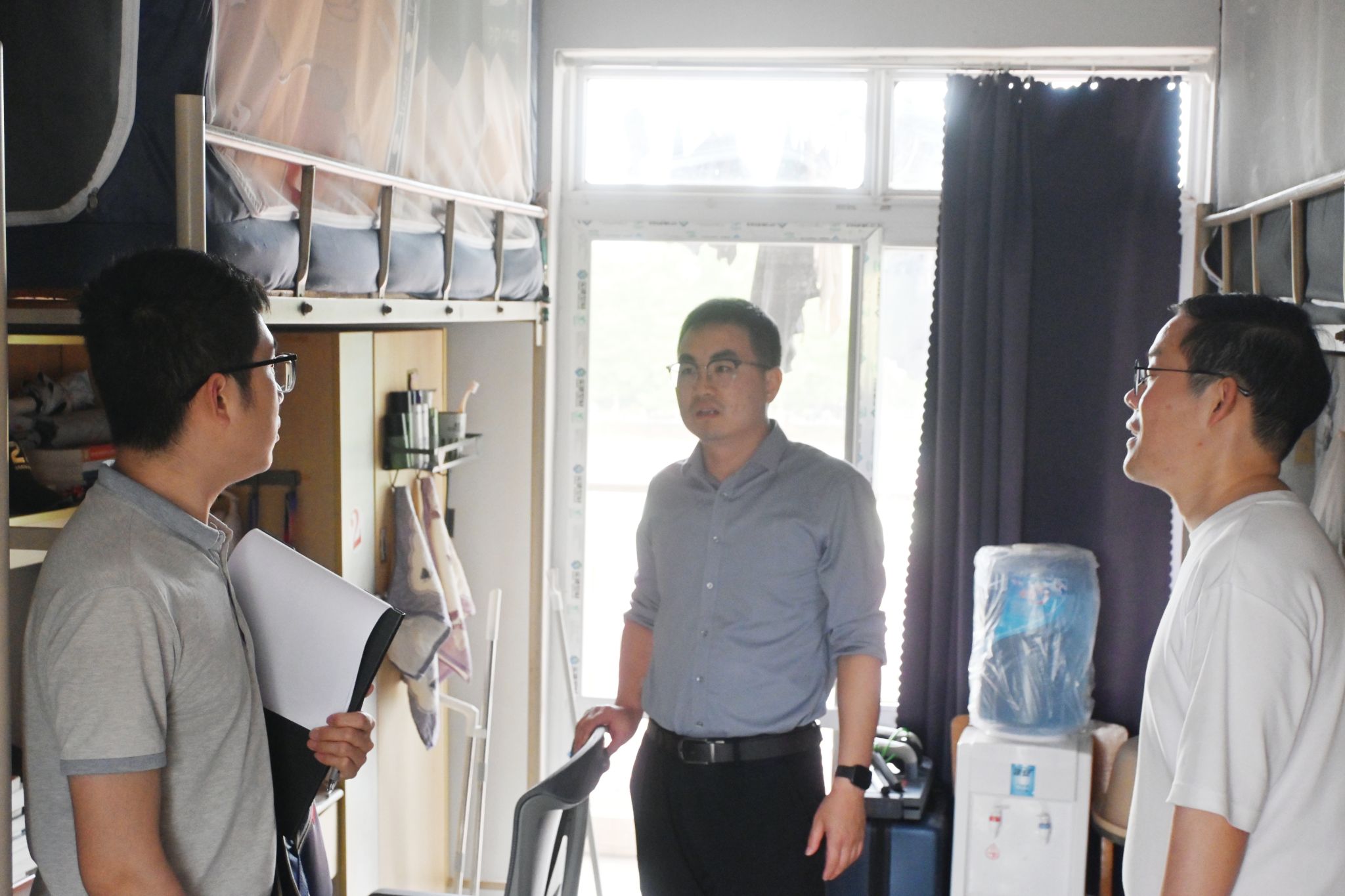 (通讯员:李菲菲)为进一步落实“三全育人”工作,织密学院育人网络,4月17日下午,学院党委副书记赵磊、副院长张洪带领辅导员队伍深入学生宿舍,集中走访了研究生、本科生所在9栋学生宿舍。