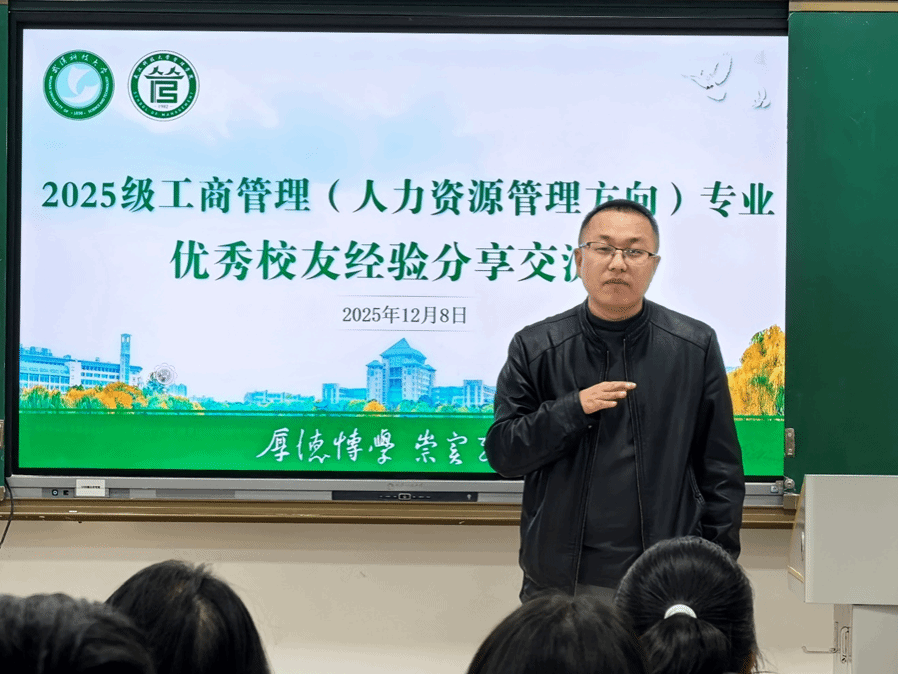 (通讯员时莹:石淼)12月8日,pa电子官网于教十一B区418开展2025级工商管理(人力资源管理方向)专业优秀校友经验分享会。2012届人力资源管理专业优秀校友潘金涛、田瑜返校分享实践经验,人力资源管理2501班班主任张敏及2025级本科生辅导员葛红涛出席交流会,2025级人力资源管理专业全体学生参加会议。